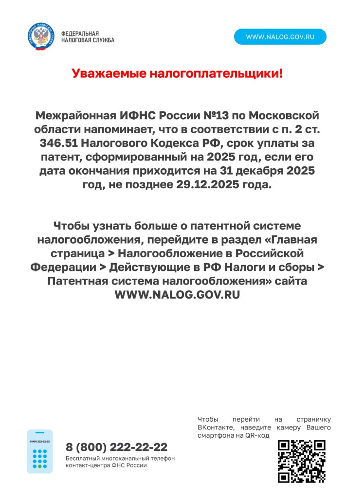 Уважаемые налогоплательщики!